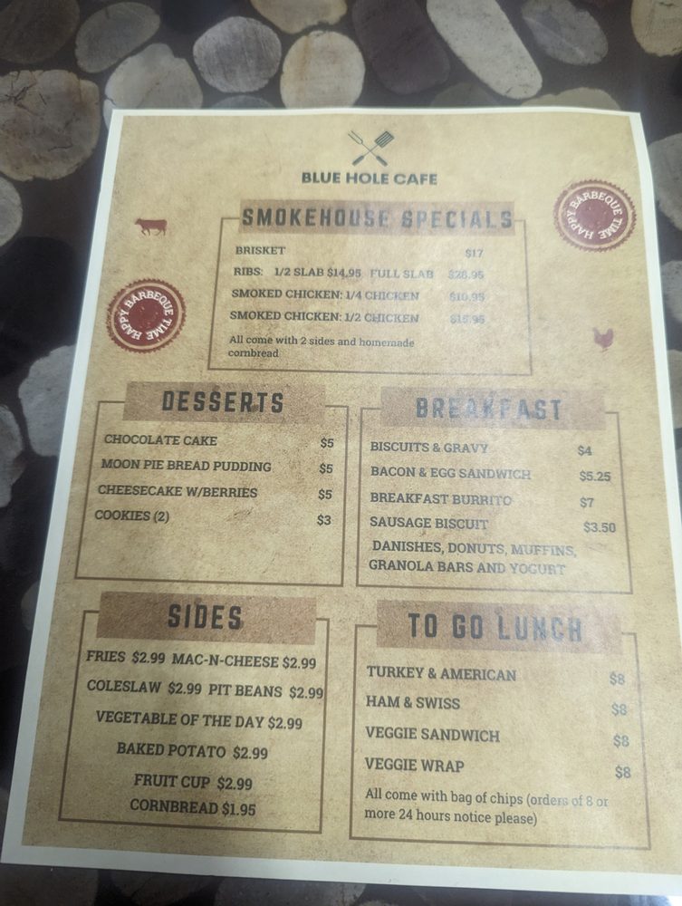 For those with a sweet tooth, the dessert menu is not to be overlooked. Blue Hole Cafe offers a selection of irresistible treats that will satisfy your dessert cravings after a filling meal. Whether it's a decadent slice of pie or a perfectly baked pastry, each dessert is crafted with care and attention to detail.